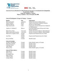 Acta de la Tercera Reunión de la Red Panamericana para la Armonización de la Regulación Farmacéutica (PARF). Grupo de Trabajo de Vacunas Ottawa, Canadá, 27, 28 y 29 de junio del 2006