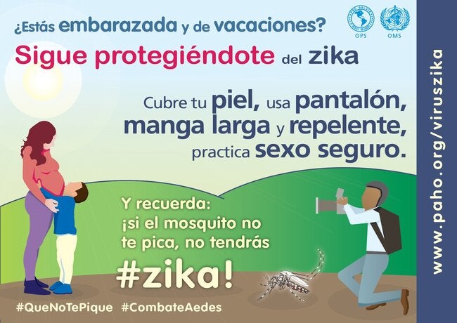 Afiche: ¿Estas embarazada y de vacaciones? Sigue protegiéndote del zika
