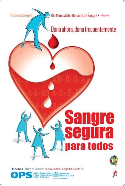 Afiche: Sangre segura para todos. Dona ahora, dona frecuentemente (JPG); 2019