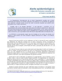 Alerta epidemiológica: Infección causada por el nuevo coronavirus - 10 de mayo del 2013