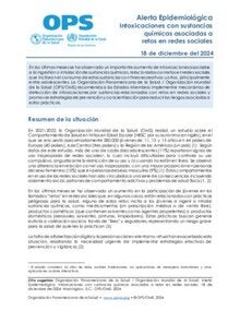 En los últimos meses se ha observado un importante aumento de intoxicaciones asociadas a la ingestión o inhalación de sustancias químicas, relacionados con retos en redes sociales que incitaron el consumo de estas sustancias con fines recreativos u otros, principalmente entre adolescentes. La Organización Panamericana de la Salud / Organización Mundial de la Salud (OPS/OMS) recomienda a los Estados Miembros implementar mecanismos de detección de intoxicaciones por sustancias relacionadas con retos en redes sociales y promover estrategias de prevención y concientización para reducir los riesgos asociados a estas prácticas. |