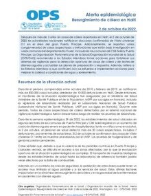 Alerta epidemiológica- Resurgimiento de cólera en Haití - 2 de octubre de 2022