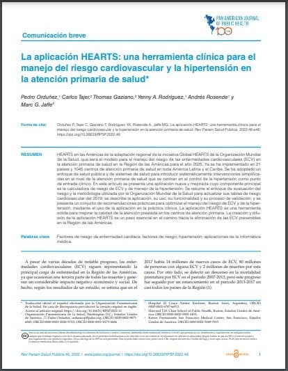 HEARTS en las Américas es la adaptación regional de la iniciativa Global HEARTS de la Organización Mundial de la Salud, que será el modelo para el manejo del riesgo de las enfermedades cardiovasculares (ECV) en la atención primaria de salud en la Región de las Américas para el año 2025. Ya se ha implementado en 21 países y 1045 centros de atención primaria de salud en toda América Latina y el Caribe. Se ha adoptado un enfoque de salud pública y de sistemas de salud para introducir sistemáticamente intervenciones simplificadas en el nivel de la atención primaria de salud que se centran en el control de la hipertensión como punto de entrada clínico. En este artículo se presenta una aplicación nueva y mejorada cuyo componente principal es la calculadora de riesgo de ECV y de manejo de la hipertensión. Se resume el enfoque de evaluación del riesgo y la metodología utilizada por la Organización Mundial de la Salud para actualizar sus tablas de riesgo cardiovascular del 2019; se describe la aplicación, su uso, su funcionalidad y su proceso de validación; y se presenta un conjunto de recomendaciones prácticas para optimizar el manejo del riesgo de ECV y de la hipertensión, mediante el uso de la aplicación en la práctica clínica. La aplicación HEARTS es una herramienta sólida para mejorar la calidad de la atención prestada en los centros de atención primaria. La creación y difusión de la aplicación HEARTS es un paso esencial en el camino hacia la eliminación de las ECV prevenibles en la Región de las Américas.