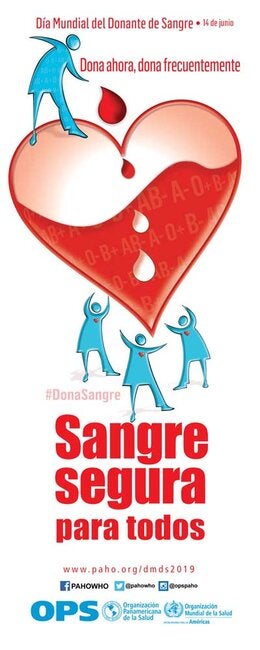 Banner vertical: Sangre segura para todos. Dona ahora, dona frecuentemente (JPG); 2019