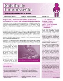 EN ESTA EDICIÓN: Preparación y desarrollo del cambio sincronizado (el switch) de la vacuna anti poliomielítica en Colombia ; XXIV reunión ad hoc del Grupo Técnico Asesor sobre Enfermedades Prevenibles por Vacunación; Situación mundial del suministro de IPV: como manejar el suministro limitado de IPV y enfrentar a posibles desabastecimientos; Reunión regional sobre registros nominales de vacunación electrónicos; La Iniciativa ProVac de la OPS ofrece herramientas nuevas en el marco del taller de capacitación regional; La Iniciativa ProVac de la OPS ofrece herramientas nuevas en el marco del taller de capacitación regional; Verificación de los progresos realizados y las deficiencias que persisten en la toma de decisiones relacionada con la inmunización; COLUMNA: Lo que he aprendido…Por la Dra. Ida Berenice Molina |