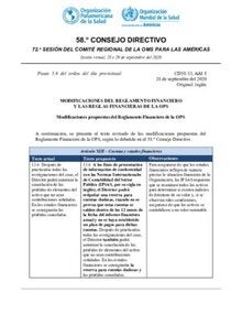 CD58/13, Add. I - Modificaciones del Reglamento Financiero y las Reglas Financieras de la OPS