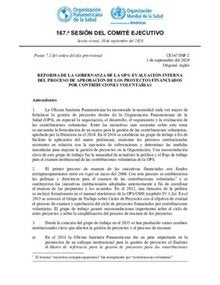 CE167/INF/2 - Reforma de la gobernanza de la OPS: Evaluación interna del proceso de aprobación de los proyectos financiados por contribuciones voluntarias