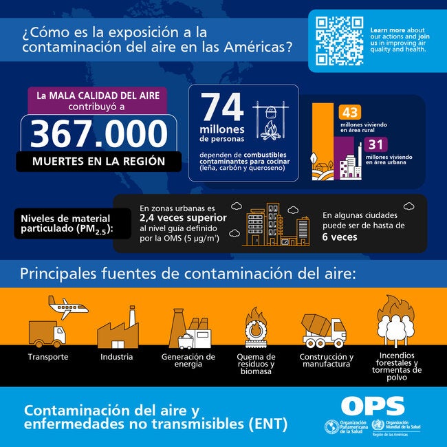 Infografía acerca de contaminación del aire y enfermedades no transmisibles (ENT).