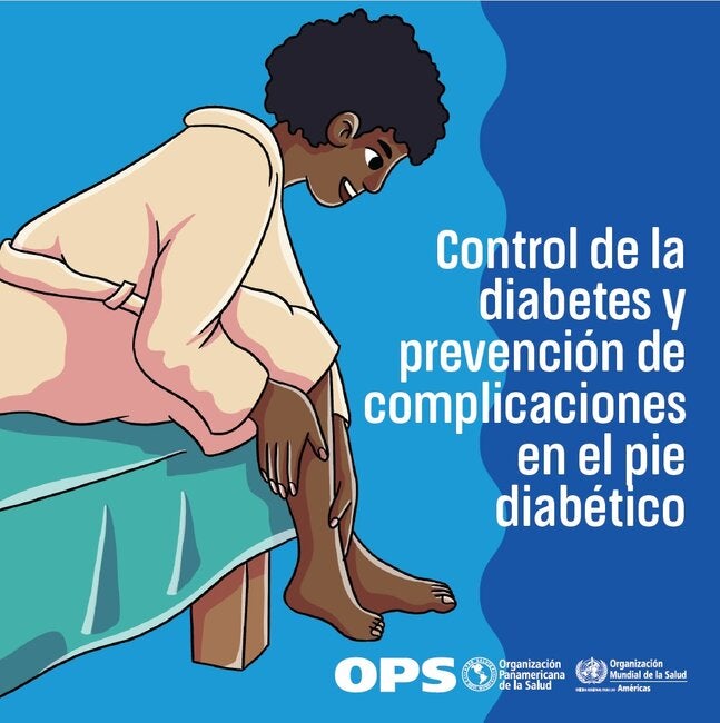 Material de comunicación sobre control de la diabetes y prevención de complicaciones en el pie diabético.