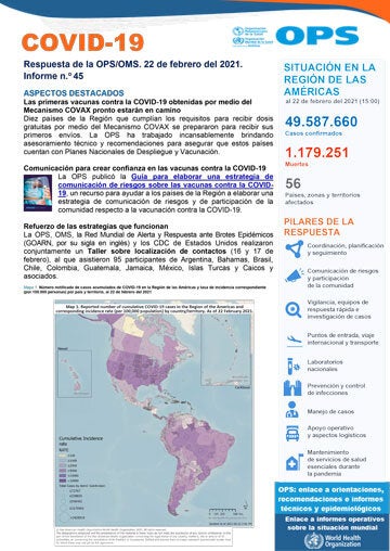 Diez países de la Región que cumplían los requisitos para recibir dosis gratuitas por medio del Mecanismo COVAX se prepararon para recibir sus primeros envíos. La OPS ha trabajado incansablemente brindando asesoramiento técnico y recomendaciones para asegurar que estos países cuentan con Planes Nacionales de Despliegue y Vacunación.