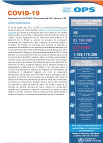 El 14 de octubre del 2021, la OPS y la Comisión Económica para América Latina y el Caribe (CEPAL) dieron a conocer nuevo informe conjunto que aborda la prolongación de la crisis sanitaria y su impacto sobre la salud, la economía y el desarrollo social en América Latina y el Caribe. Los dos organismos de las Naciones Unidas instaron a los gobiernos de la Región a acelerar los procesos de vacunación, transformar los sistemas de salud, fortalecer la inversión pública y consolidar los Estados de bienestar para controlar la pandemia y avanzar en la recuperación con igualdad y sostenibilidad ambiental. Las conclusiones del informe fueron presentadas por la Directora de la OPS, doctora Carissa F. Etienne, y la Secretaria Ejecutiva de la CEPAL, Alicia Bárcena, en una conferencia de prensa donde se destacó que a raíz de la crisis sanitaria del 2020, América Latina y el Caribe experimentaron la mayor contracción económica de los últimos 120 años, y fue la región que tuvo el peor desempeño entre todas las regiones en desarrollo. En el informe, la OPS y la CEPAL destacan que la asimetría mundial y la fragmentación institucional en el acceso a las vacunas contra la COVID-19 demuestran la urgencia de fortalecer los mecanismos de coordinación e integración regional, así como la cooperación internacional.