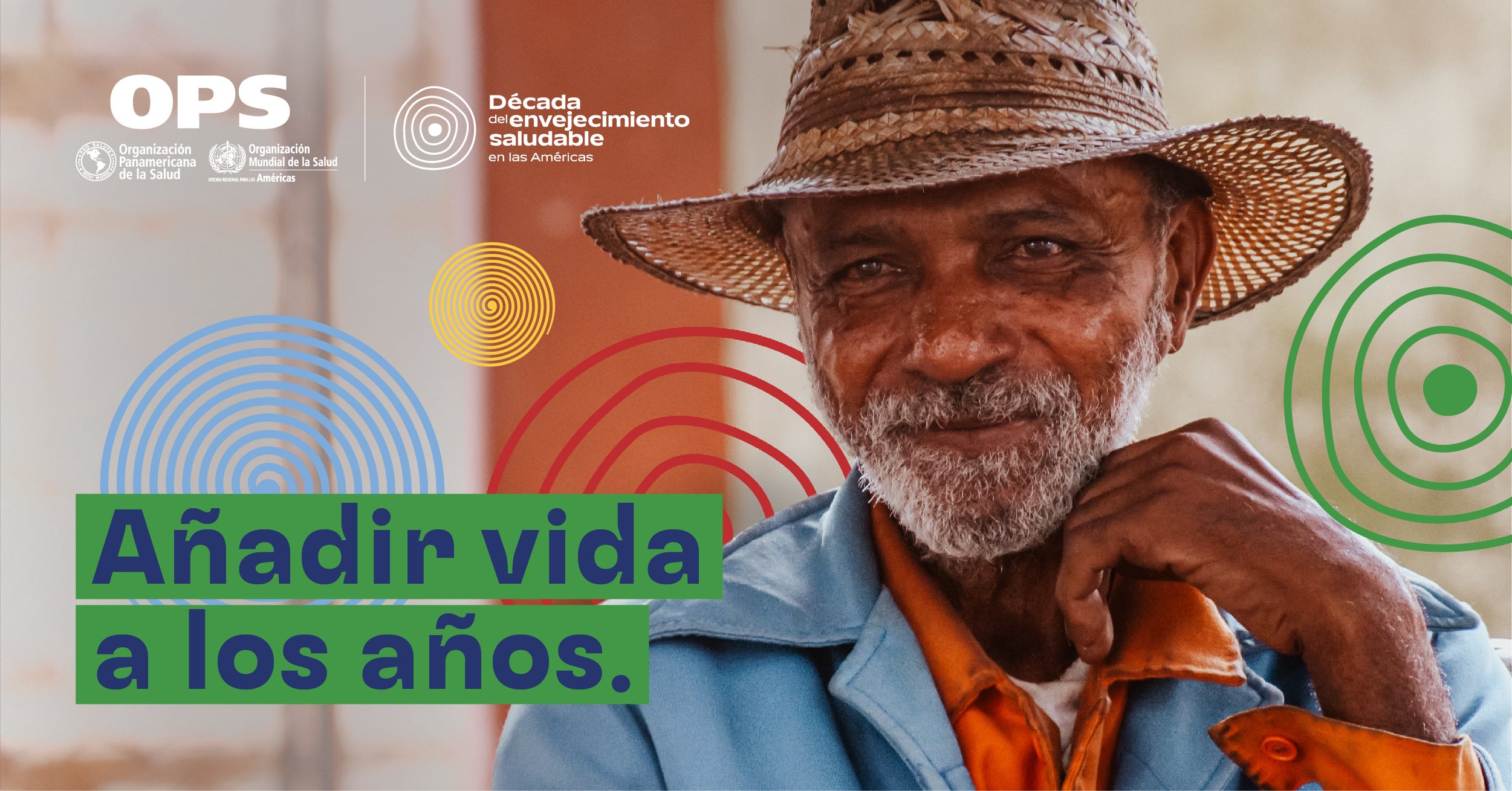Parte de la identidad visual creada para la Década del Envejecimiento Saludable en las Américas (2021-2030). Tarjeta de redes sociales 2.