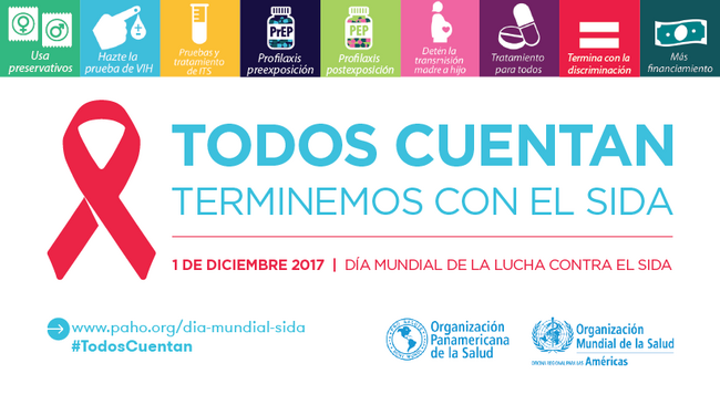 Día mundial de la lucha contra el sida 2017: Postal para FACEBOOK. "Todos cuentan. Terminemos con el Sida"