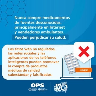 Nunca compre medicamentos en fuentes desconocidas Más información:Toolkit - Vigilancia y Control de Mercado de Productos Médicos Subestándar y Falsificados |