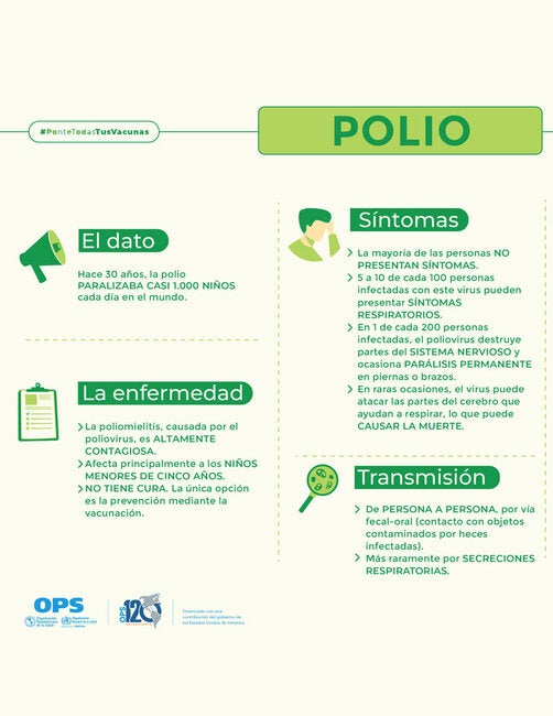 8 Días de Acción por la VacunaciónDel 24 al 31 de octubre 2022. Es una campaña con la que en los países y territorios en las Américas buscamos revitalizar la importancia de la inmunización como un bien público para la salud universal, para que todos los países y territorios de la Región alcancen los objetivos establecidos para la prevención de enfermedades prevenibles por la vacunación y el acceso a la vacunación a todas las personas, para preservar la salud de los niños, los adolescentes, los adultos y las sociedades en todas partes. Tarjetas para redes sociales relacionadas a Polio