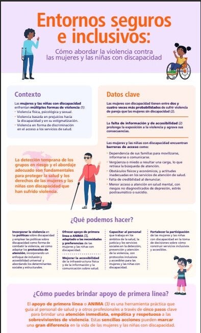 Este documento presenta una hoja informativa sobre cómo crear entornos seguros e inclusivos para abordar la violencia contra las mujeres y las niñas con discapacidad. Las mujeres y las niñas con discapacidad enfrentan múltiples formas de violencia: - Violencia física, psicológica y sexual
