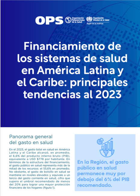 El gasto público en salud en América Latina y el Caribe representa más de la mitad de los recursos, el 55,6% en promedio. Por otra parte, el gasto de bolsillo en salud se mantiene en niveles elevados y equivale a un tercio del gasto corriente en salud, cifra que supera el umbral recomendado de menos del 20% para lograr una mayor protección financiera de los hogares. Este documento contiene las tendencias del gasto en salud en el 2023 en la región y muestra que el objetivo estratégico de alcanzar cifras de dicho gasto del 6% del producto interno bruto sigue siendo lejano para la mayoría de los países de la subregión. Esto perjudica los avances hacia un gasto en salud más sostenible y predecible, y la posibilidad de una mejor protección financiera de los hogares.Las tendencias del gasto en salud muestran que, después de la emergencia de la COVID-19, en el 2020 y el 2021, los niveles de inversión en salud retornaron a los del 2019 comprometiendo los avances informados. |