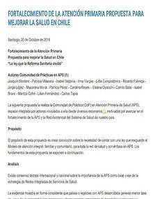 Fortalecimiento De La Atención Primaria Propuesta Para Mejorar La Salud En Chile