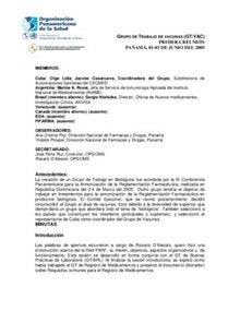 Grupo de Trabajo de Vacunas (GT/VAC) -Red PARF. Primera reunión. Panamá, 01-03 de junio del 2005