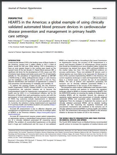 HEARTS en las Américas: un ejemplo mundial del uso de dispositivos automatizados de medición de la presión arterial validados clínicamente en la prevención y el manejo de las enfermedades cardiovasculares en entornos de atención primaria de salud*