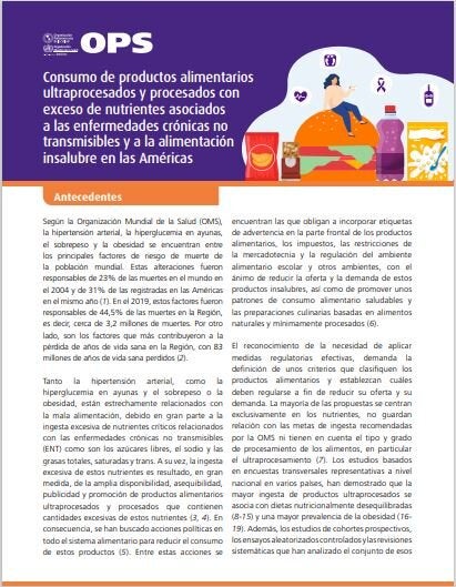 Este estudio tiene como objetivo estimar los efectos del consumo de productos con un exceso de azúcares libres, sodio y grasas totales, saturadas y trans sobre la calidad de la alimentación. A partir de encuestas representativas de ocho países de las Américas y según el modelo de perfil de nutrientes de la Organización Panamericana de la Salud, se tienen en cuenta las metas de ingesta de nutrientes críticos relacionados con las enfermedades no transmisibles.