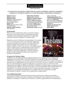 Más de tres años de producción, más de cien horas de rodaje y entrevistas con personas de quince nacionalidades hacen que Translatina sea una inquietante exposición de la realidad que enfrentan las personas transgénero en América Latina. Mediante una serie de testimonios de representantes de la sociedad civil y otros interesados directos, este documental largometraje muestra de una manera muy realista los retos que enfrentan las personas transgénero para obtener acceso a la educación, el trabajo, la justicia, la salud y otros servicios. Pero también muestra cómo las organizaciones no gubernamentales están iniciando un diálogo con los gobiernos para exigir oportunidades para la inclusión de las personas transgénero y cómo tales iniciativas pueden dar lugar a importantes cambios para garantizar los derechos de esa población. |
