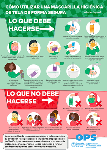 Esta infografía explica lo qué se debe hacer y lo que se debe evitar cuando se usa una mascarilla de tela.