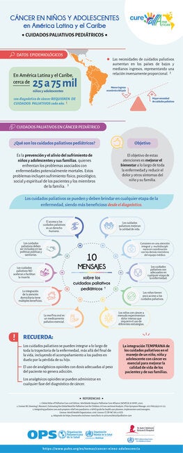 Infografía que resume los principales conceptos sobre los cuidados paliativos en el manejo del cáncer pediátrico. Enlaces relacionados: