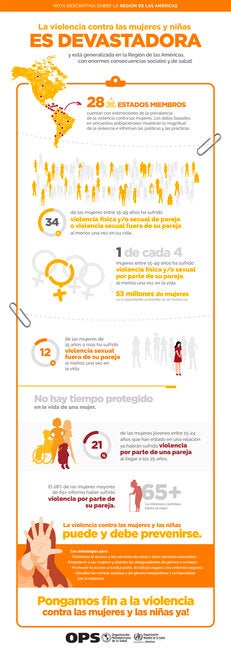 Infografía que resume los principales datos de las estimaciones de prevalencia de la violencia contra las mujeres, hoja informativa de 2018 para la Región de las Américas