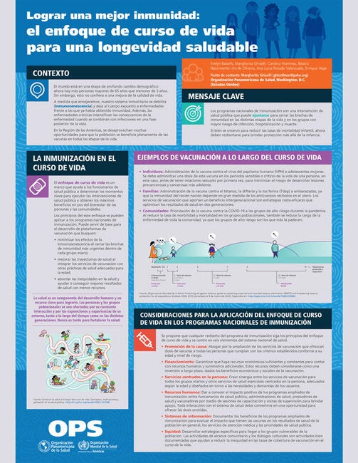 El mundo está en una etapa de profundo cambio demográfico: ahora hay más personas mayores de 65 años que menores de 5 años. Sin embargo, esto no conlleva a una mejora de la calidad de vida. A medida que envejecemos, nuestro sistema inmunitario se debilita (inmunosenescencia) y deja al cuerpo expuesto a enfermedades frente a las que ya había obtenido inmunidad. Además, las enfermedades crónicas intensifican las consecuencias de la enfermedad cuando se combinan con infecciones en una fase posterior de la vida. En la Región de las Américas, se desaprovechan muchas oportunidades para que la población se beneficie plenamente de las vacunas en todas las etapas de la vida.