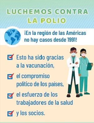 ¡En la región de las Américas no hay casos desde 1991! Infografía sobre el Día Mundial contra la polio. Importancia de la vacunación y el compromiso político.