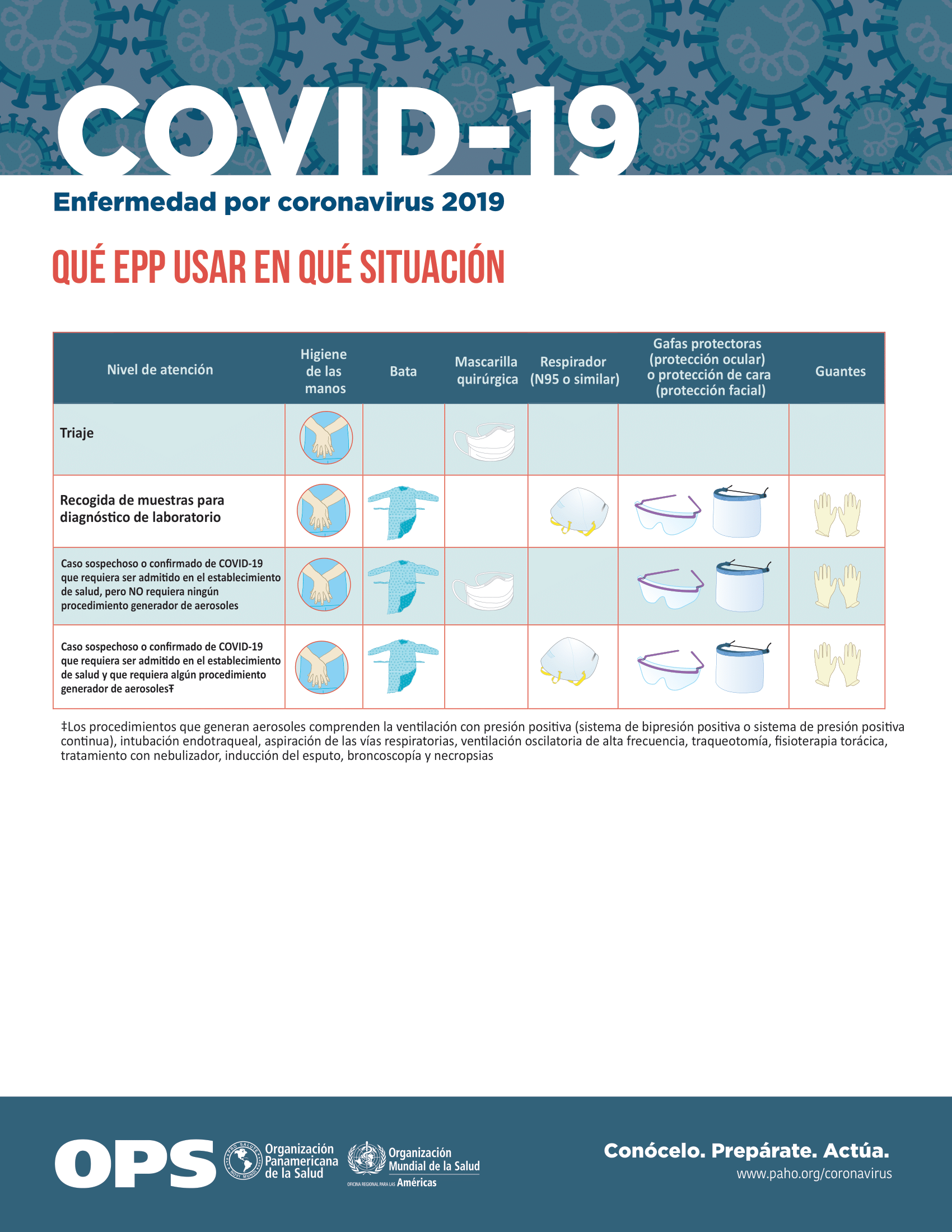 Infografía sobre qué equipo personal de protección usar en qué situación.