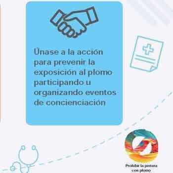 - Únase a la acción para prevenir la expsoición al plomo participando u organizando eventos de concientización