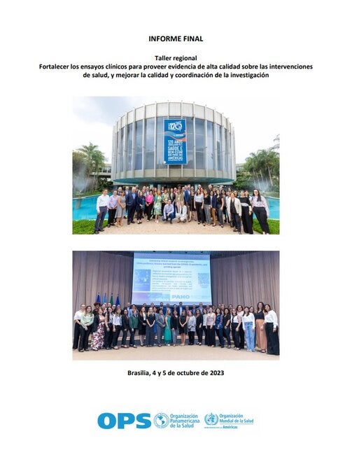 Como parte de la implementación de la resoluciónWHA 75.8 de la 75.a Asamblea Mundial de la Salud sobre el fortalecimiento de los ensayos clínicos para proporcionar evidencia de alta calidad sobre las intervenciones de salud y mejorar la calidad y la coordinación de las investigaciones, la Organización Panamericana de la Salud (OPS) realizó un taller los días 4 y 5 de octubre del 2023, en Brasilia, Brasil, con participantes de diferentes países de la Región de las Américas. El objetivo fue identificar, discutir y proponer acciones concretas para fortalecer la realización de ensayos clínicos científica y éticamente sólidos en la Región de las Américas. Este informe final resume la reflexión y discusión de los problemas y desafíos identificados durante el taller regional y presenta las acciones clave propuestas por los participantes.