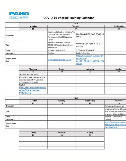 Programa de inmunización durante la pandemia COVID-19 Inmunización Materiales de entrenamiento Familia, Promoción de la Salud y Curso de Vida Vacunas contra la COVID-19