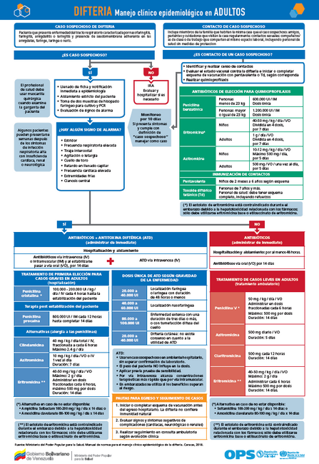 Afiches sobre el manejo clínico epidemiológico de la difteria en Venezuela (incluye adultos y pediátrico)
