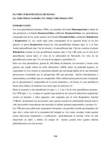 En este manual, se presenta en forma amena y abreviada los principales métodos (serológicos, virológicos y moleculares) que se utilizan en la actualidad en el diagnóstico de laboratorio de los principales agentes virales causantes de IRA. Esta obra dirigida, fundamentalmente a profesionales y técnicos de nuestra región servirá de guía de trabajo para el estudio de estas entidades. IX.-VIRUS PARAINFLUENZA HUMANOS Lic. Lídice Palerm Caraballo y Lic. Odalys Valdés Ramírez.MsC Los virus parainfluenza humanos (VPIh), son miembros del orden Mononegavirales y dentro de este pertenecen a la familia Paramyxoviridae, subfamilia Paramyxovirinae. Los parainfluenza comprenden dos de los cuatro géneros de la familia Paramixoviridae, nombrados Rubulavirus y Respirovirus (1). |