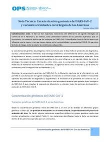 Nota Técnica: Caracterización genómica del SARS-CoV-2 y variantes circulantes en la Región de las Américas
