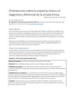 El propósito de esta publicación es presentar unas orientaciones para el diagnóstico clínico de la viruela símica a fin de ayudar al adecuado manejo de los pacientes y a la aplicación de las prácticas de control de infecciones. Además, dado que la apariencia y evolución de las lesiones cutáneas típicas de esta enfermedad viral son variables, se incluye una selección de fotografías de distintos casos que servirán de ayuda para el diagnóstico diferencial.