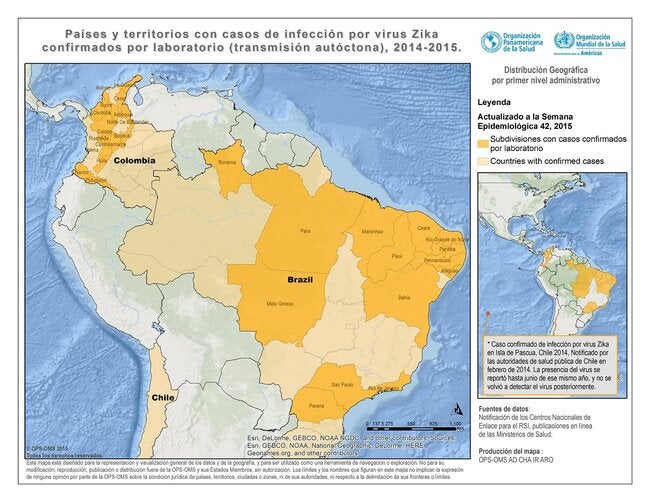 Países y territorios con transmisión autóctona de virus del zika. Semana Epidemiológica 42 - 2015