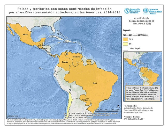 Países y territorios con transmisión autóctona del virus del zika. Semana Epidemiológica 48 - 2015