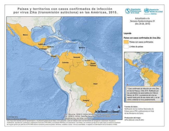 Países y territorios con transmisión autóctona de virus del zika. Semana Epidemiológica 51 - 2015