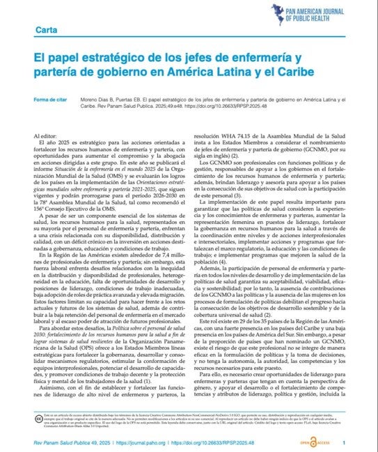 El año 2025 es estratégico para las acciones orientadas a fortalecer los recursos humanos de enfermería y partería, con oportunidades para aumentar el compromiso y la abogacía en acciones dirigidas a este grupo. En este año se publicará el informe Situación de la enfermería en el mundo 2025 de la Organización Mundial de la Salud (OMS) y se evaluarán los logros de los países en la implementación de las Orientaciones estratégicas mundiales sobre enfermería y partería 2021-2025, que siguen vigentes y podrán prorrogarse para el período 2026-2030 en la 78ª Asamblea Mundial de la Salud, tal como recomendó el 156º Consejo Ejecutivo de la OMS. A pesar de ser un componente esencial de los sistemas de salud, los recursos humanos para la salud, representados en su mayoría por el personal de enfermería y partería, enfrentan a una crisis relacionada con su disponibilidad, distribución y calidad, con un déficit crónico en la inversión en acciones destinadas a gobernanza, educación y condiciones de trabajo. En la Región de las Américas existen alrededor de 7,4 millones de profesionales de enfermería y partería; sin embargo, esta fuerza laboral enfrenta desafíos relacionados con la inequidad en la distribución y disponibilidad de profesionales, heterogeneidad en la educación, falta de oportunidades de desarrollo y posiciones de liderazgo, condiciones de trabajo inadecuadas, baja adopción de roles de práctica avanzada y elevada migración. Estos factores limitan su capacidad para hacer frente a los retos actuales y futuros de los sistemas de salud, además de contribuir a la baja retención del personal de enfermería en el mercado laboral y al escaso poder de atracción de futuros profesionales. |