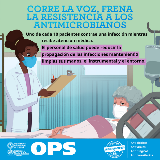 Postales para redes sociales - Resistencia Antimicrobiana: El personal de salud puede reducir la propagación de las infecciones