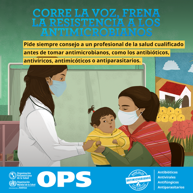 Postales para redes sociales - Resistencia Antimicrobiana: Pide siempre consejo a un profesional de la salud cualificado