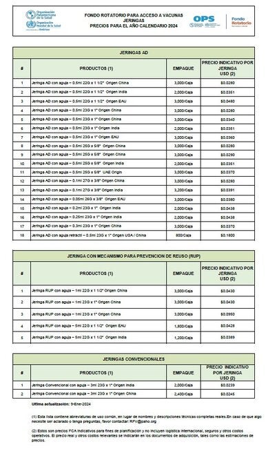 Precios de Jeringas del Fondo Rotatorio para el 2024
