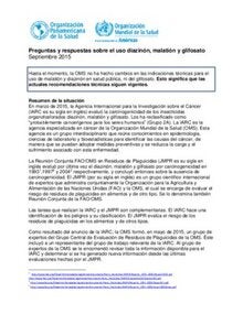Septiembre 2015 - Hasta el momento, la OMS no ha hecho cambios en las indicaciones técnicas para el uso de malatión y diazinón en salud pública, ni del glifosato. Esto significa que las actuales recomendaciones técnicas siguen vigentes. Resumen de la situaciónEn marzo de 2015, la Agencia Internacional para la Investigación sobre el Cáncer (IARC es su sigla en inglés) evaluó la carcinogenicidad de los insecticidas organofosforados diazinón, malatión y glifosato. Los ha reclasificado como "probablemente cancerígenos para los seres humanos" (Grupo 2A). La IARC es la agencia especializada en cáncer de la Organización Mundial de la Salud (OMS). Esta agencia es un grupo interdisciplinario que reúne conocimientos en epidemiología, ciencias de laboratorio y bioestadísticas para identificar las causas del cáncer, de manera que se puedan adoptar medidas preventivas y se reduzca la carga y el sufrimiento asociado con esta enfermedad. |