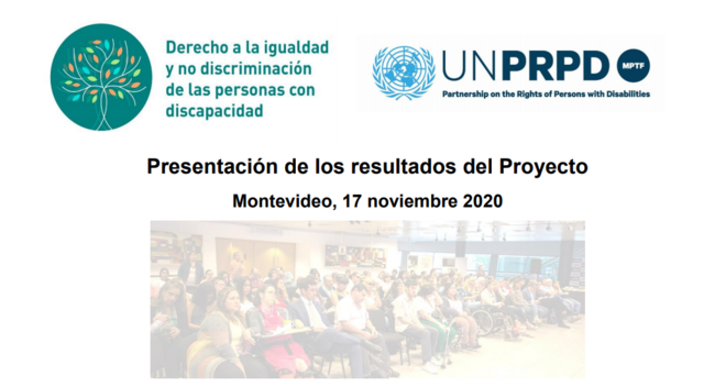 Presentación resultados del proyecto Interagencial "Derecho a la igualdad y no discriminación de las personas con discapacidad", llevado adelante desde 2018 por OPS, UNFPA, ONUMUJERES y la OCR del Sistema de Naciones Unidas, trabajando en conjunto con Instituciones estadales (ASSE; AUCI; BPS; INE; MIDES - Pronadis e Inmujeres -; MSP) y la Sociedad Civil Organizada (Alianza de organizaciones por los derechos de las personas con discapacidad).