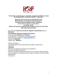 Luego de fundar el primer Centro para la Salud Pública en el país, Hands on Peru ha venido empoderando comunidades menos favorecidas a través de un modelo de programas e intervenciones comunitarias basadas en conceptos y bases de salud pública, donde damos herramientas, conocimientos e igualdad de oportunidades para que en conjunto, bajo nuestra guía, las familias mejoren los determinantes (condicionantes) de su salud. A raíz de la llegada del COVID-19, no ha sido la excepción, hemos continuado abasteciendo con herramientas necesarias a grupos altamente vulnerables para su protección y autocuidado. Creemos que éstas desigualdades en educación, y recursos, son determinantes, y de relación alta para que las personas tomen una decisión adecuada sobre sus prácticas de autocuidado. Empezamos primero en la comunidad donde se ubica nuestro Piloto Centro Poblado Villa Los Angeles, y luego seguimos con otros grupos vulnerables como la Asociación de venezolanos en Trujillo, 50 Ollas comunes de Asentamientos Humanos en los alrededores de nuestra ciudad. Todos ellos, con un nivel socioeconómico y nivel educativo bastante bajo. Teniendo nuestra intervención un alcance de casi 4000 personas. |