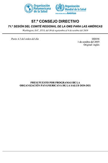 Este proyecto de Presupuesto por Programas de la Organización Panamericana de la Salud 2020-2021 es el primero en elaborarse y ejecutarse en el marco del nuevo Plan Estratégico de la Organización Panamericana de la Salud 2020-2025. En este documento se establecen los resultados institucionales y las metas para la Organización Panamericana de la Salud (OPS) acordados por los Estados Miembros para los próximos dos años, y se presenta el presupuesto que la Oficina Sanitaria Panamericana (“la OSP” o “la Oficina”) necesitará para apoyar a los Estados Miembros a fin de que logren el máximo impacto posible en salud. |